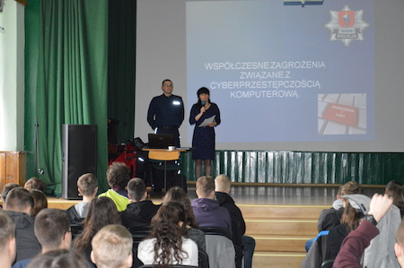 Podczas spotkania młodzież uzyskała informację m.in. na temat odpowiedzialności prawnej i ich konsekwencjach w zakresie szeroko rozumianej cyberprzemocy, rodzajów przestępstw komputerowych jak i co należy zrobić w przypadku stania się ofiarą z użyciem elektronicznych technologii. Podczas spotkania zaprezentowano film profilaktyczny "W sieci" a także zapoznano z ogólnopolską akcja edukacyjną Nieskradzione.pl gdzie uczestnikom przekazano ulotki.