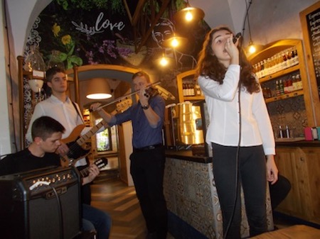 a Karolina Szeremeta z zespołem muzycznym /I LO/ zaprezentowali jego wersje wokalną.