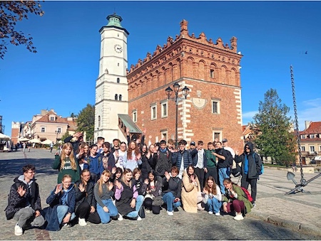 Ostatniego dnia września 2024 r. uczniowie klas pierwszych 1A, 1B i 1D, wraz z wychowawcami: panią Beatą Wasilewską - Wnuk, panią Iwoną Kicińską i panią Martą Dynowską oraz opiekunami ks. Marcinem Lewczukiem i panią pedagog Natalią Kosmalą, wybrali się na wycieczkę integracyjną do Sandomierza. Uczestnicy wyjazdu spacerowali po średniowiecznym rynku i podziwiali zabytkowe kamieniczki oraz ratusz z XIV wieku. Następnie udali się do zbrojowni w podziemiach jednej z kamienic. Uczniowie mogli przymierzyć stroje rycerskie i obejrzeć ówczesną broń.