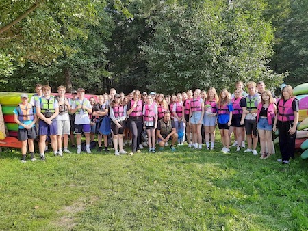 12 września 2023 r. uczniowie klas 1b i 1h uczestniczyli w wycieczce krajoznawczo-integracyjnej po Roztoczu. Płynąc kajakami poznaliśmy kręte meandry rzeki Wieprz wspólnie radząc sobie z problemami poruszania się za pomocą wioseł. Po pozytywnym wysiłku „doładowaliśmy baterie” samodzielnie upieczoną kiełbaską i chlebkiem.