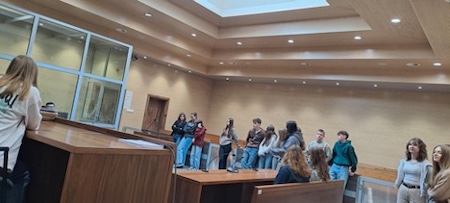 10 kwietnia klasa 2e uczestniczyła w obserwacji rozprawy cywilnej w Sądzie Okręgowym w Zamościu. Przewodniczący sędzia przybliżył uczniom zasady prowadzenia postępowania, sposób przesłuchiwania świadków oraz wskazał różnice między postępowaniem cywilnym a karnym, ilustrując je konkretnymi przykładami.