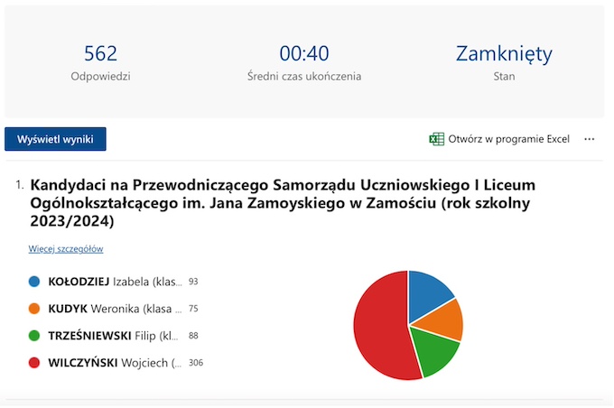 31 października w tajnym głosowaniu młodzież I LO wybrała nowego Przewodniczącego Samorządu Uczniowskiego, którym został Wojciech Wilczyński z klasy 3d.