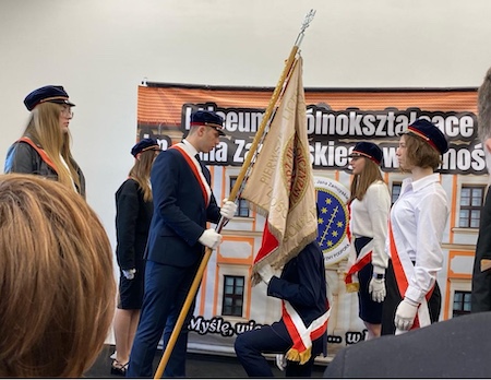 Następnie uroczyście przekazano Sztandar Szkoły młodszemu rocznikowi.