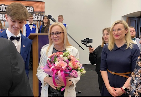 Pani Dyrektor, Agnieszka Kowal, z wielkim wzruszeniem zwróciła się do młodzieży, rodziców, nauczycieli i pracowników Szkoły. Mówiła o nowych możliwościach i drogach, jakie otwierają się przed absolwentami. Pogratulowała sukcesów i złożyła życzenia powodzenia na maturze i w dalszym życiu.