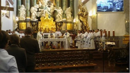 Uczniowie naszej Szkoły również uczestniczyli w tym wydarzeniu. Na Jasnej Górze chcieliśmy zaakcentować także ważne dla całej społeczność I LO święto – 100-lecie istnienia Szkoły, dlatego w darze oprócz chleba i wina Dyrekcja złożyła ornat i sto białych róż.