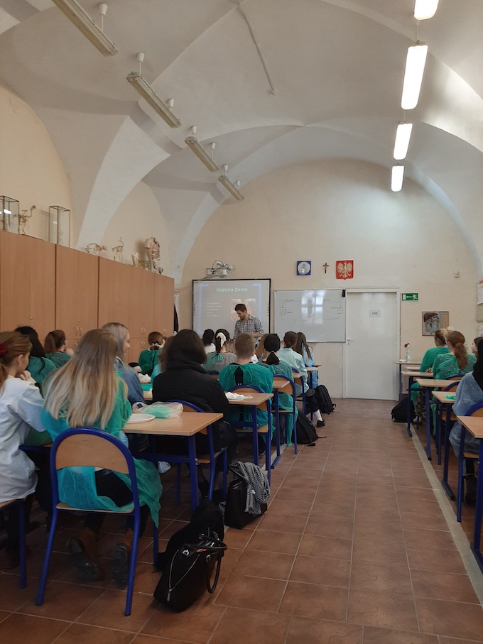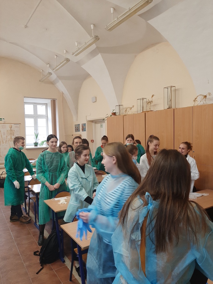 W dniu 18 lutego w naszej szkole odbyły się lekcje biologii w formie laboratoryjnej. W ramach współpracy z uczelniami wyższymi o kierunkach przyrodniczych uczniowie klasy II H i II I pod czujnym okiem Szymona Chrześcijana absolwenta szkoły oraz studenta 5 roku medycyny Śląskiego Uniwersytetu Medycznego mieli możliwość zapoznać się i przeprowadzić sekcję anatomiczną serca świni jako najbardziej zbliżonego budową do serca ludzkiego. Uczniowie mieli możliwość obserwować lokalizację zastawek przedsionkowo-komorowych, zastawek półksiężycowatych oraz lokalizację głównych naczyń krwionośnych. Sekcje zostały przeprowadzone z wykorzystaniem podstawowego sprzętu medycznego i odzieży ochronnej stosowanej przy tego typu zabiegach.