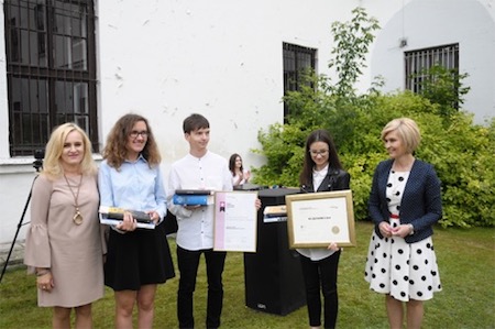Następnie głos zabrała Pani Agnieszka Kowal, Dyrektor Wydziału Oświaty, która w imieniu Prezydenta Miasta Zamość Andrzeja Wnuka wręczyła dyplomy i nagrody uczestnikom Olimpiady Zwolnieni z Teorii – Justynie Nadłonek, Barbarze Ptak i Dominikowi Dębińskiemu.