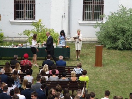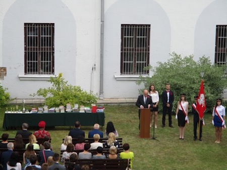 Uroczystość zakończenia roku szkolnego rozpoczęła się Mszą św. w Kościele Św. Katarzyny. Część oficjalna odbyła się na dziedzińcu Szkoły. Zebranych powitali przedstawiciele SU.