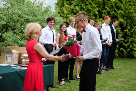 W środę /19 czerwca/ miało miejsce uroczyste zakończenie roku szkolnego 2018/2019. Rozpoczęło się Mszą św. odprawioną w kościele św. Katarzyny, a następnie celebrowanie tego ważnego w oświatowym kalendarzu wydarzenia kontynuowane było na dziedzińcu naszego Liceum. Zebranych powitał przewodniczący Samorządu Uczniowskiego Mikołaj Suszek. Pani Dyrektor Bożena Krupa serdecznie podziękowała zarówno nauczycielom, wychowawcom, jak i oczywiście samym uczniom za wspólnie spędzony czas, trud włożony w przekazywanie i zdobywanie wiedzy oraz solidarne budowanie dobrego wizerunku szkoły, życzyła też wszystkim udanego wakacyjnego wypoczynku.