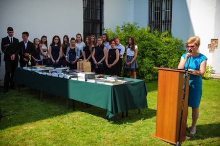 Pani Dyrektor Agata Waszek gratulowała młodzieży i nauczycielom osiągnięć naukowych, a także wręczyła nagrody i dyplomy laureatom olimpiad, konkursów, uczniom wyróżniający się w nauce. Na koniec przekazała przesłane przez Pana Dyrektora Zygmunta Kamińskiego, który w tym roku wyjątkowo nie mógł być z nami, podziękowania i życzenia dla uczniów i nauczycieli.