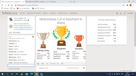 Do rywalizacji przystąpiło 10 uczniów, w tym jedna uczennica Turniej był rozgrywany za pośrednictwem aplikacji Teams i platformy lichess.org.