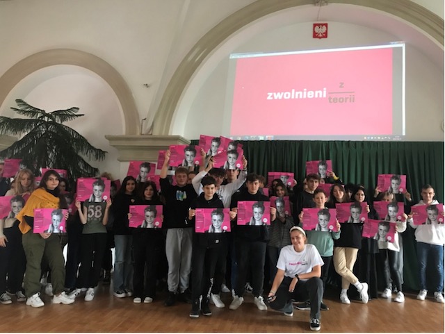We wtorek 27 września 2022 r. w Sali Kolumnowej młodzież spotkała się z trasowiczką ogólnopolskiej Olimpiady Zwolnieni z Teorii, która wyruszyła w Polskę aby zachęcać młodych ludzi do zmiany swojego otoczenia poprzez realizację własnych projektów społecznych.