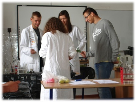 • Dzień IV: Przygotowanie uczniów do pokazu doświadczeń, który odbywa się piątego dnia, doświadczenia z ciekłym azotem, identyfikacja związków organicznych