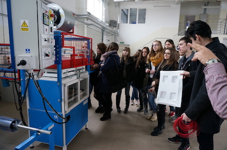 Uczniowie mieli okazję wysłuchać krótkiego wykładu  m.in. na temat reakcji  polimeryzacji oraz przetwórstwa tworzyw sztucznych. Interesującą częścią spotkania było poznanie w praktyce zasad działania  takich urządzeń jak: wtryskarka, wytłaczarka, zgrzewarka, urządzenie do kształtowania folii. Było to cenne doświadczenie -  "lekcja w praktyce" - ukazująca  szerokie zastosowanie wiedzy chemicznej w życiu codziennym. Spotkanie zorganizowała p. Agata Waszek – wicedyrektor szkoły, opiekunowie: p. Radosław Dąbrowski, p. Agnieszka Niańko.