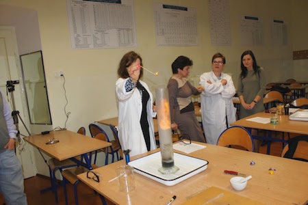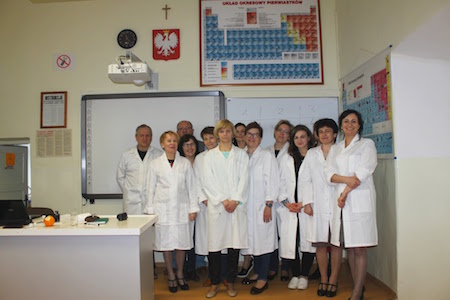 9 kwietnia 2016 r. w naszej szkole odbyło się seminarium naukowe nauczycieli chemii. Gospodarzem spotkania była p. Agata Waszek – wicedyrektor szkoły, nauczyciel chemii oraz prof. Włodzimierz Kuśmierczuk – nauczyciel chemii. Spotkanie poprowadziła p. Aleksandra Reder – konsultant edukacji chemicznej Lubelskiego Samorządowego Centrum Doskonalenia Nauczycieli w Zamościu. Tematyka spotkania koncentrowała się wokół pracy z uczniem uzdolnionym chemicznie. Twórcza dyskusja , wymiana doświadczeń, poszerzenie wiedzy przedmiotowej oraz  wspólne wypracowanie wielu propozycji do pracy indywidualnej z uczniem było inspirującym metodycznie doświadczeniem. W części warsztatowej nauczyciele wykonali wiele atrakcyjnych wizualnie doświadczeń (m.in.: kameleon, kapiszony, płonące dłonie, fontanna chemiczna, pasta dla słonia i inne). Nauczyciele chemii składają podziękowania Dyrektorowi Szkoły Panu Zygmuntowi Kamińskiemu za gościnność i możliwość  przeprowadzenia doświadczeń w szkolnym laboratorium chemicznym.