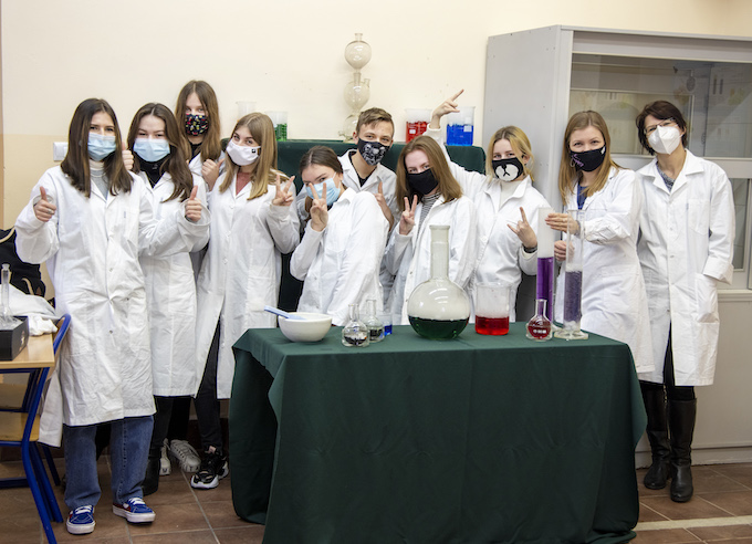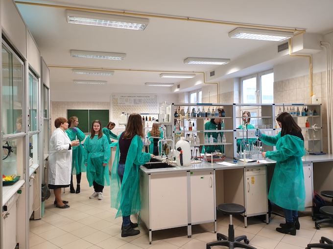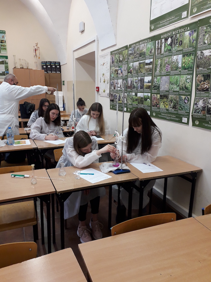 W piątek 28 maja 2021 r. mogliśmy gościć w naszej szkole panią dr Jadwigę Stachowicz wraz z współpracownikami Katedry Chemii Uniwersytetu Przyrodniczego w Lublinie. Pod ich kierunkiem odbyły się warsztaty chemiczne w ramach projektu: "Ścieżką CHEMiczną: uczę, doświadczam, rozumiem, korzystam, inspiruję".