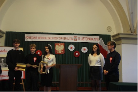 Akademię rozpoczął utwór: „Uwierz Polsko” w wykonaniu Oliwii Bieleckiej z klasy 3d. Następnie o trudnych czasach, kiedy Polska jako kraj nie istniała na mapie Europy przypomnieli Julia Niańko i Kacper Wodyk z klasy 3e, prowadzący część artystyczną.