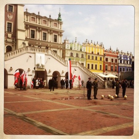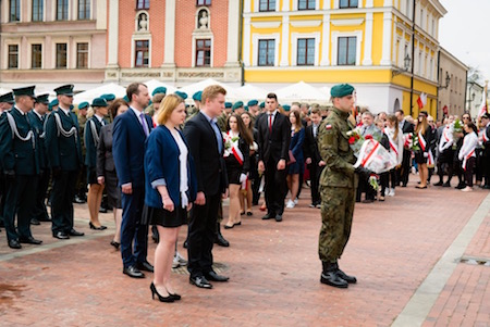 3 maja br. o godzinie 11 na Rynku Wielkim odbyła się manifestacja patriotyczna z ceremoniałem wojskowym. Przemówienie wygłosił prezydent Andrzej Wnuk. Później odczytany został Apel Pamięci i oddana salwa honorowa. Pod koniec uroczystości zostały złożone wiązanki kwiatów przy tablicy upamiętniającej wizytę marszałka Józefa Piłsudskiego w 1922 roku w Zamościu. Przemarsz defilady wojskowej i pocztów sztandarowych zakończył święto.