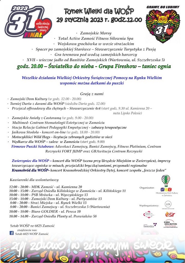 Już po raz 31 Wielka Orkiestra Świątecznej Pomocy zagra w szczytnym celu. Wolontariusze naszej szkoły jak co roku wyruszą z puszkami na zamojskie ulice. Tegoroczny cel skierowany jest do wszystkich. Za zebrane pieniądze podczas finału zostanie zakupiony sprzęt pozwalający na walkę z sepsą, która jest 5 przyczyną wszystkich zgonów na świecie.