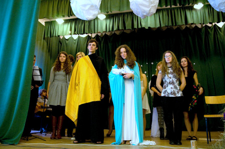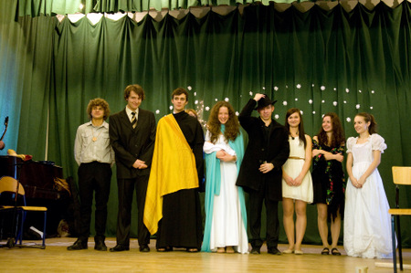 Piątek 21 grudnia był dla nas wyjątkowym dniem. Każda klasa przygotowywała wigilię, więc już od rana pachniało barszczem (z paczki), pasztecikami i… ciastem. W południe wszyscy spotkaliśmy się w szkolnej auli, by złożyć sobie świąteczne życzenia i oglądać jasełka przygotowane pod okiem siostry Mirosławy Kozioł.