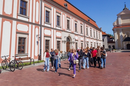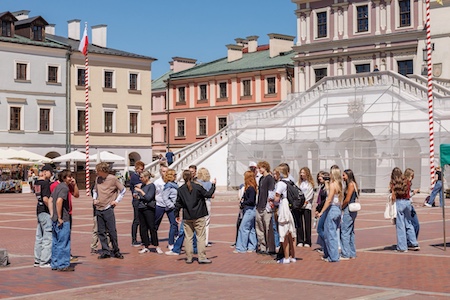 Z wieży ratuszowej podziwialiśmy panoramę Zamościa, a następnie udaliśmy się na spacer po Starówce. Nasz przewodnik, pan Daniel, przybliżył historię miasta, podzielił się ciekawostkami i – co najważniejsze – wskazał miejsce z najlepszym cebularzem w mieście!