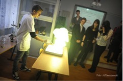 Młodzi chemicy wykonywali przeróżne doświadczenia. Dowodem ich obecności i zaangażowania był m.in. siwy dym pokrywający korytarz.