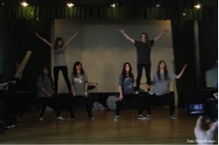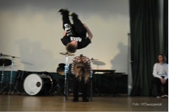 W tym samym czasie w auli miały miejsce układy taneczno-gimnastyczne przygotowane przez uczennice klas pierwszych i pokaz akrobacji w wykonaniu Wojtka.