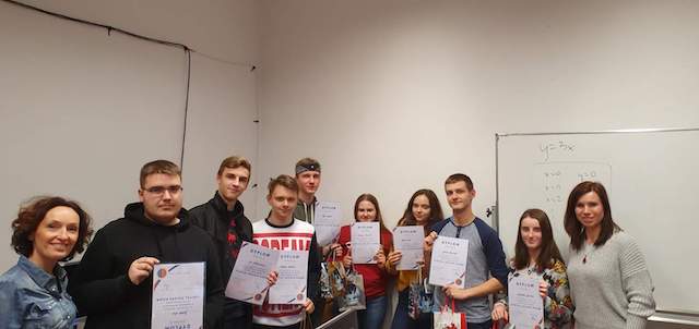 Zwyciężyła drużyna z klasy 2C w składzie: Mateusz Popielec, Jan Złomańczuk i Jakub Zub (nauczyciel Dorota Brogowska). Drugie miejsce zajęła drużyna z klasy 2G: Gabriela Gancarz, Jakub Rowiński, Anna Żurakowska (nauczyciel Urszula Kusz), natomiast trzecie drużyna z klasy 2A: Agata Czuk, Zuzanna Rzeszutek, Adam Sobczuk (nauczyciel Małgorzata Struk). Serdecznie gratulujemy zwycięzcom, którzy otrzymali atrakcyjne nagrody ufundowane przez wydawnictwa językowe oraz Dyrekcję I LO.