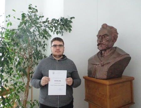 W poniedziałek 10 lutego odbył się finał IV DYKTANDA W JĘZYKU ANGIELSKIM, organizowanego przez Uczelnię Państwową im. Szymona Szymonowica w Zamościu dla szkół ponadpodstawowych. Nasi uczniowie wypadli bardzo dobrze. Jakub Zub z klasy 2c wygrał cały konkurs, Filip Kitka z 3a był trzeci, a Adam Sobczuk z 2a zajął siódme miejsce. Gratulujemy!