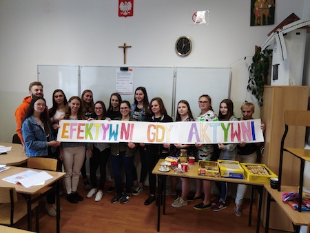 Grupa niestrudzonych uczniów z klasy 2G przystąpiła do projekty „Efektywni, gdy aktywni” . Celem projektu jest osiągnięcie wyższego poziomu aktywności społecznej oraz podniesienie kompetencji społecznych wymagających rozwoju z perspektyw potrzeb i wymogów rynku pracy. Obecnie na szczególną uwagę zasługuje fakt posiadania przez osoby młode kompetencji społecznych ponieważ w organizacjach przeważa praca zespołowa, gdzie pracownicy wspólnie realizują zadania. Struktura kompetencji obejmuje wiedzę i umiejętności oraz motywacje i samoocenę. Opiekunem projektu jest Pani Beata Soboń.