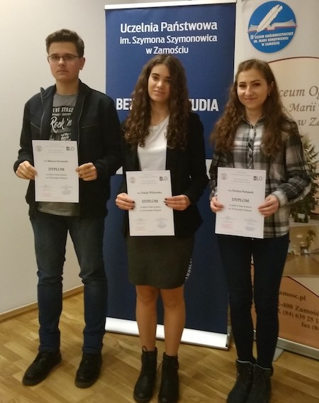 Troje licealistów, Natalia Walkowska z klasy 1d oraz Ewelina Padejasek i Mateusz Sroczyński z 2e, wzięło udział 4 lutego 2020 w finale XI Zamojskiego Dyktanda w siedzibie Uczelni Państwowej im Szymona Szymonowica w Zamościu. W tym roku uczniowie zmierzyli się z tekstem dyktanda o Instagramie globtroterki, w którym pojawiły się słowa odnoszące się do nowych technologii i mediów społecznościowych, co okazało się nie lada wyzwaniem dla młodych entuzjastów ortografii.