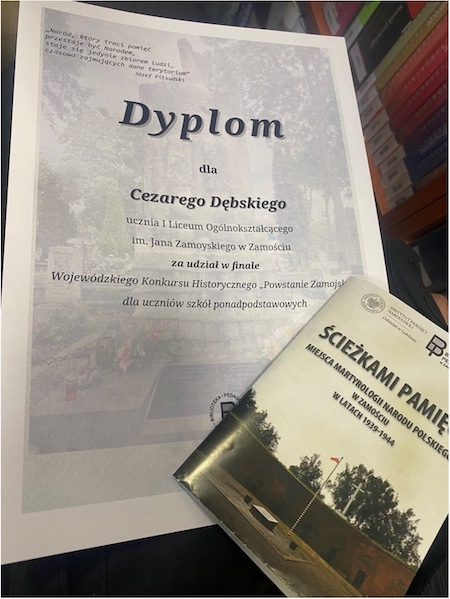 Do finału wojewódzkiego zakwalifikował się Cezary Dębski z klasy 2a, który 15 grudnia podczas Finałowej Gali Wojewódzkiego Konkursu Historycznego „Powstanie Zamojskie”, otrzymał dyplom za uczestnictwo w konkursie. Wszystkim uczestnikom gratulujemy zaangażowania i życzymy sukcesów.