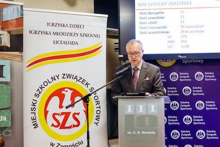 Dnia 27 listopada 2023 r. w sali konferencyjnej III LO w Zamościu odbyła się gala podsumowująca osiągnięcia sportowe za rok szkolny 2022/23. Na gali reprezentowali nas dyrektor I LO p. Agnieszka Kowal, przewodniczący zespołu WF p. Emil Rafalski oraz dwóch uczniów z wysokimi osiągnięciami sportowymi za dany rok szkolny - Daniel Nadłonek i Karina Borysz. Nasza szkoła zajęła V miejsce w klasyfikacji ogólnej wszystkich szkół ponadpodstawowych w Zamościu i uzyskała wyróżnienie w postaci pucharu i dyplomów z podziękowaniami za zaangażowanie.