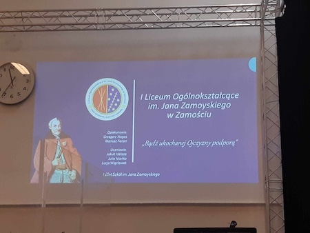 17 listopada w XVIII Liceum Ogólnokształcącym im. Jana Zamoyskiego w Warszawie, odbył się pierwszy zlot szkół noszących imię Jana Zamoyskiego. Naszą szkołę reprezentowali – dyrektor Grzegorz Nogas, opiekun samorządu uczniowskiego Mariusz Farion oraz uczniowie: Julia Niańko, Łucja Więcławek i Jakub Hałasa. Ideą Zlotu jest kultywowanie tradycji i historii Jana Zamoyskiego, wymiana doświadczeń wśród dyrekcji, nauczycieli i uczniów.Podczas Zlotu uczniowie przedstawiali prezentacje na temat swoich szkół. Odbyło się spotkanie z pracownikiem Muzeum Historii Polski, który opowiadał o przygotowywanej ekspozycji związanej z postacią naszego patrona, wysłuchaliśmy koncertu muzycznego w wykonaniu młodzieży warszawskiego liceum. Miejmy nadzieję, że pierwszy zlot zapoczątkuje nową szkolną tradycję.