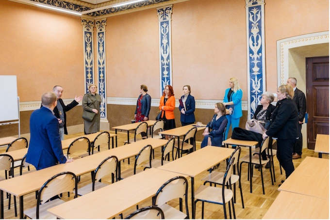 Następnie nasi goście mogli zwiedzić budynek Akademii oprowadzani przez wspaniałych zamojskich przewodników, obejrzeć prezentację poświęconą Janowi Zamoyskiemu przygotowaną przez panie Agnieszkę Niańko i Paulinę Adamowicz i wystawę fotografii pana Mirosława Chmiela dokumentującą przebieg rewitalizacji.