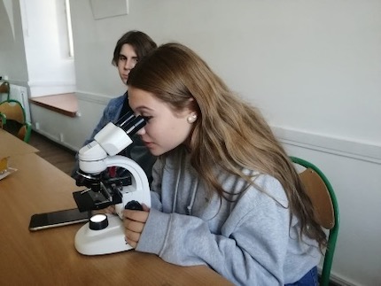 Podczas zajęć pierwszoklasiści poznali tajniki mikroskopowania poprzez doskonalenie umiejętności pracy z mikroskopem optycznym oraz opanowanie sztuki wykonywania żywych preparatów mikroskopowych.