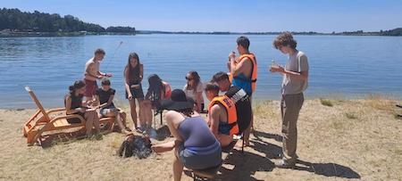 Rozpoczęliśmy od turystyki aktywnej – każdy miał możliwość przepłynięcia się motorówką, a wspólna integracja na deskach SUP dostarczyła wielu emocji i radości. Pan Maciej Kokoszka przypomniał zasady bezpiecznego zachowania nad wodą oraz podzielił się swoją pasją – żeglarstwem. Zwieńczeniem dnia było wspólne ognisko i grillowanie kiełbasek.