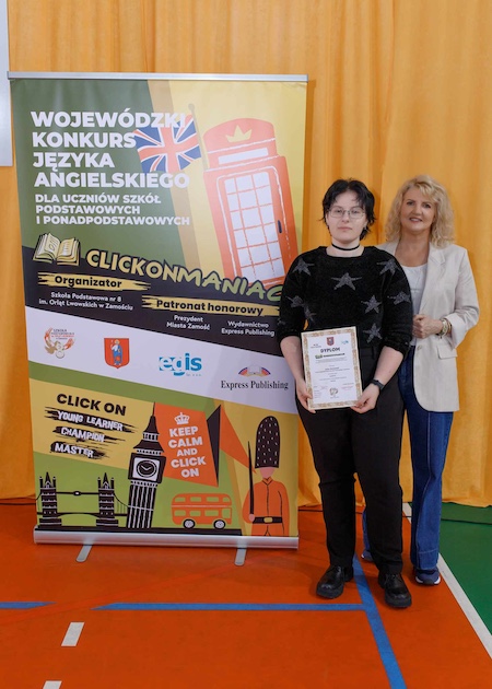 Uroczyste podsumowanie i rozdanie nagród w Wojewódzkim Konkursie Języka Angielskiego CLICKONMANIAC odbyło się 14 czerwca 2024 r. w Szkole Podstawowej nr 8 w Zamościu.