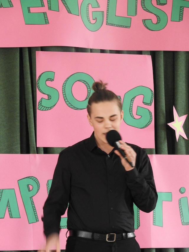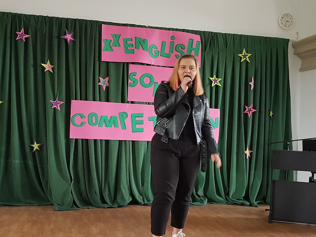 oraz pani Urszula Kusz – nauczyciel języka angielskiego z naszego liceum. Każdy utwór oceniany był w trzech kategoriach: walory muzyczne, ogólne wrażenie artystyczne oraz poprawność językowa. Poziom artystyczny zaprezentowanych utworów był, zdaniem jurorów i publiczności, niezwykle wysoki.