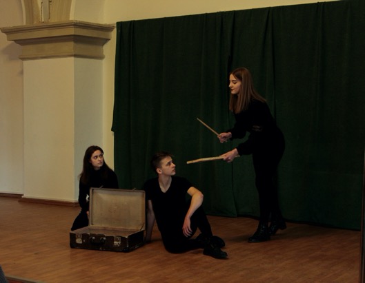 W oczekiwaniu na werdykt jury konkursowego uczniowie obejrzeli spektakl pod tytułem „Przedmioty”, który przygotowali uczniowie pracujący w Kole Żywego Słowa pod kierunkiem pana profesora Piotra Linka we współpracy z grupą teatralną Młodzieżowego Domu Kultury prowadzoną przez pana Piotra Johaniuka.
