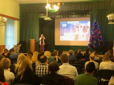 Zadaniem decydującym o przyznaniu statusu Szkoły Myślenia Pozytywnego było zorganizowanie szkolenia dla nauczycieli, wychowawców, pedagogów i psychologów z powiatu zamojskiego w zakresie nabycia kompetencji niezbędnych dla realizatorów programu promocji i profilaktyki zdrowia psychicznego w szkole „Myślę pozytywnie”. Szkolenie to odbyło się w auli naszej szkoły w dniu 10.12.2018 r.
