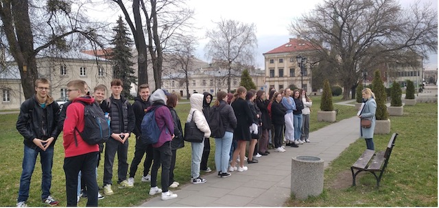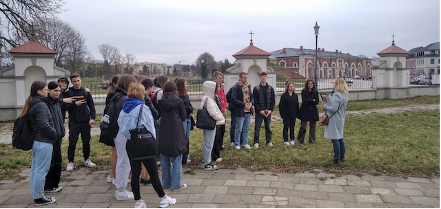 Następnie pani przewodnik Agnieszka Linek poprowadziła uczniów szlakiem, który zapewne wielokrotnie przemierzał poeta, zwracając uwagę na miejsca szczególnie mu bliskie.