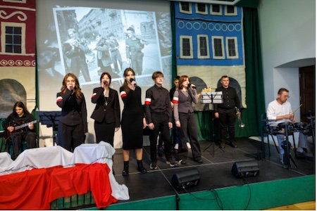 Znany wszystkim utwór „Hej chłopcy bagnet na broń” zaśpiewali, pełni autentycznego zaangażowania popartego talentami wokalnymi uczniowie: Oliwia Bielec, Karolina Greszta, Joanna Łęcka, Iga Grątkowska, Julia Muda, Adam Minkiewicz, przy akompaniamencie Agnieszki Turos, Marty Słotwińskiej, Malwiny Piwińskiej oraz Karola Maciochy. Kolejne zaśpiewane przez nich pieśni powstańcze wywołały u publiczności łzy wzruszenia.