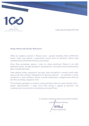 List Lubelskiego Kuratora Oświaty do Absolwentów