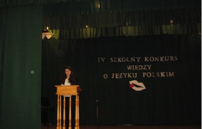 W auli szkolnej dnia 7 marca 2013r. odbył się oratorski etap IV Konkursu Wiedzy o Języku Polskim. Do zmagań przystąpiło 9 uczennic z naszego liceum. Poziom wystąpień na temat etymologii słów w języku polskim był bardzo wyrównany, a komisja konkursowa w składzie: Krystyna Kamińska, Bogusława Racewicz – Białek i Magdalena Lis miała niezwykle trudny wybór.
