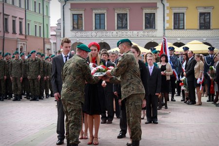 W wykładach uczestniczyli min. przedstawiciele naszego Samorządu Szkolnego. (Chętnie wyjaśnią niezorientowanym(!) skąd wzięły się nasze barwy narodowe). Później nastąpiło uroczyste podniesienie flagi państwowej na Rynku Wielkim.
