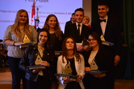 Dyrektor szkoły Pani Bożena Krupa przekazała nagrody książkowe i wyróżnienia dla uczniów wykazujących się szczególnymi osiągnięciami, zarówno w edukacji, jak i w zajęciach pozaszkolnych. Zostały wręczone statuetki Optimus Optimorum dla najlepszych uczniów ze średnią 5,0 i powyżej. Otrzymali je: Adriana Siek, Sylwia Mandziuk, Jagoda Madejczyk, Szymon Wiśniewski, Kinga Kwarciana, Sandra Pliżga, Piotr Płatek. Rodzice wyróżnionych uczniów zostali uhonorowani listami gratulacyjnymi, które wręczyła Dyrektor szkoły. Podziękowania za współpracę odebrała też Przewodnicząca Rady Rodziców Pani Zofia Buchajczuk. Nagrodami książkowymi i okolicznościowymi medalami uhonorowani zostali uczniowie – laureaci i finaliści olimpiad przedmiotowych. Liczną grupę odbierających nagrody stanowili też członkowie Samorządu Uczniowskiego, wolontariusze, chórzyści oraz sportowcy zdobywający laury na zawodach sportowych.