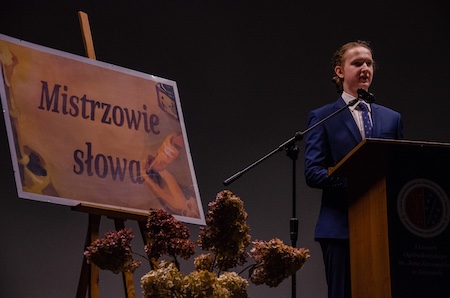 Co prawda popełnianie błędów językowych nie jest karalne, ale posługiwanie się poprawną polszczyzną świadczy o naszej kulturze osobistej, wyczuciu językowym i erudycji. Mogliśmy się o tym przekonać podczas finałowej części konkursu polonistycznego „Mistrzowie słowa”, który odbył się w naszej szkole 5 marca. Do tej części konkursu zakwalifikowało się czternaścioro uczniów, siedmioro ze szkół podstawowych i siedmioro z naszego liceum. Zadaniem każdego z uczestników było wygłoszenie mowy na wybrany temat: Realny czy wirtualny? Czy świat bez mediów społecznościowych byłby lepszy? Jakie jest, Twoim zdaniem, największe wyzwanie XXI wieku, z którym będzie musiało zmierzyć się młode pokolenie? Pieska, kocia, końska… frazeologia. Przeanalizuj na wybranych przykładach zwierzęcą frazeologię w języku polskim.