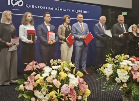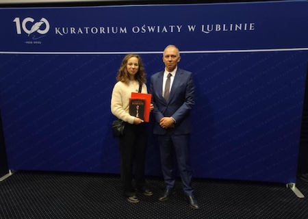 30 maja w Centrum Kultury Filmowej "Stylowy" w Zamościu miało miejsce uroczyste wręczenie Nagród Przezydenta Miasta Zamość za osiągnięcia dydaktyczne i sportowe wroku szkolnym 2024/25. Za osiągnięcia w konkursach chemicznych nagrodzony został nasz absolwent Jakub Pacaj, za osiągnięcia sportowe nagrodzono Emilię Hunkiewicz z klasy 3a. Serdecznie gratulujemy!