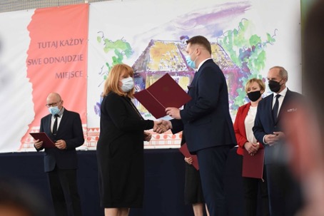 Natomiast W Biłgoraju, gdzie odbywały się uroczystości regionalne pani Mirosława Podhajny odebrała Nagrodę Ministra z rąk szefa resortu edukacji p. Przemysława Czarnka.